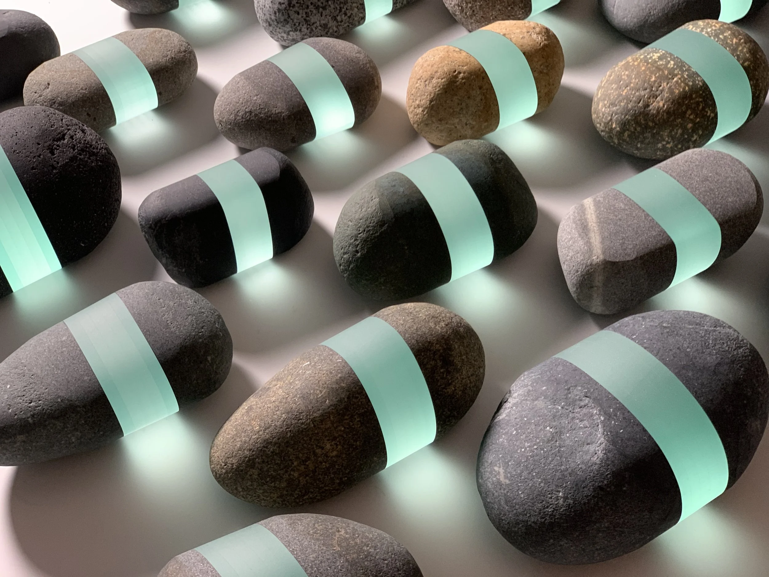 In the studio, I accelerate the slow violence of geological processes. My materials are engaged in a condensed passage of time—modified by my brief tenure, on a timeline charted by millennia, not decades. The heat of the kiln allows molten glass to nestle into stone and days of grinding/polishing simulate eons of erosion. In my pursuit of permanence, I create invulnerable, seamless objects that have been broken and mended outside of geological time.